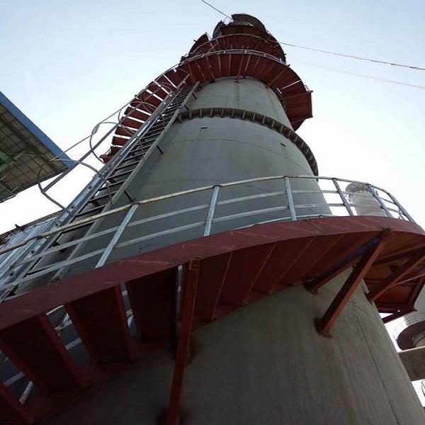 烟囱安装防腐旋转梯工程施工,烟囱安装防腐旋转梯、爬梯、护笼、平台作业是一个危险的高空工程项目。因为烟囱是高耸构筑物,一般没有登高经验人员是无法直爬梯攀爬,要重新安装旋转梯和监测平台,方便环保检测人员登高开展检测工作。